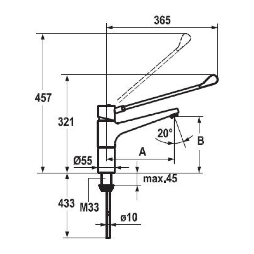 - Einhebelmischer mit extralangem Hygiene-Bedienhebel