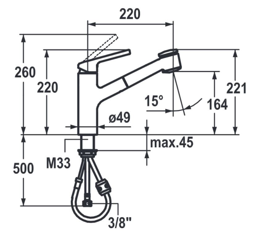 Anschluß: flexible Anschlußschläuche 3/8" Gewinde