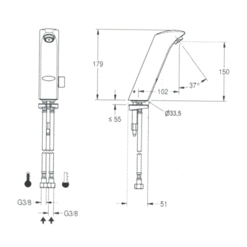 - berührungslose Handwascharmatur Infrarot für Waschtische