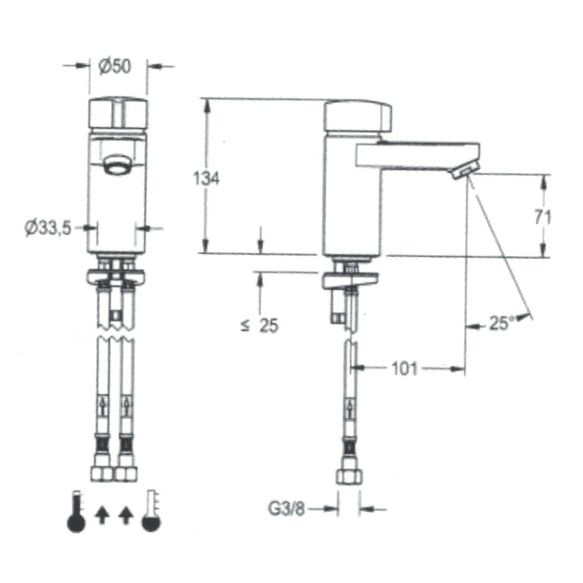 Produktinformationen "KWC 136.10.000FL Franke AQUAMIX-C Handwaschbecken-Armatur mit Druckspüler - Hydraulische Automatik"