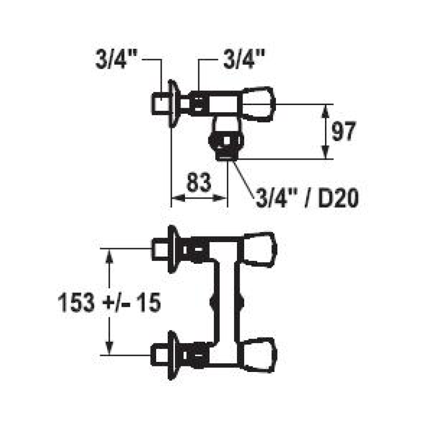 - Anschlußgewinde 3/4" x DN 20 für Schläuche und Handbrausen
