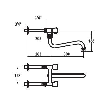 Produktinformationen "KWC Gastro K.24.42.12.000C74 Gastronomie-Wandarmatur Zweihebelmischer nieder"