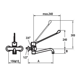 Abstand der Anschlußgewinde: 150 mm (+/- 15 mm über Exzenteranschlüsse)