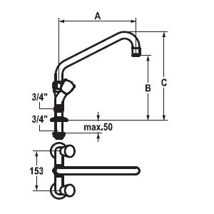KWC Gastro K.24.42.41.000C74 3/4" Zweigriff-Gastronomiearmatur - Zweiloch - nieder - geneigt
