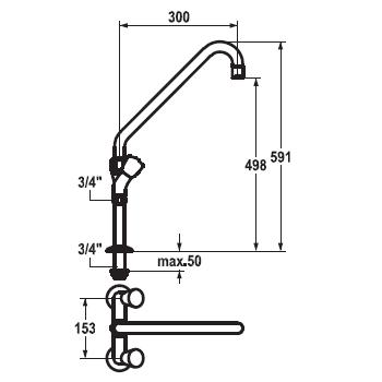 KWC Gastro K.24.42.43.000C74 3/4" Zweigriff-Gastronomiearmatur - Zweiloch - hoch - geneigt
