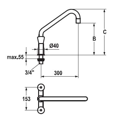 Premium-Produkt, stark erhöhter Schwenkauslauf 30 cm, 3/4" Anschlußgewinde, 110 Liter/Minute, Swiss Made, auch mit 1/2" Anschlußgewinde lieferbar.
