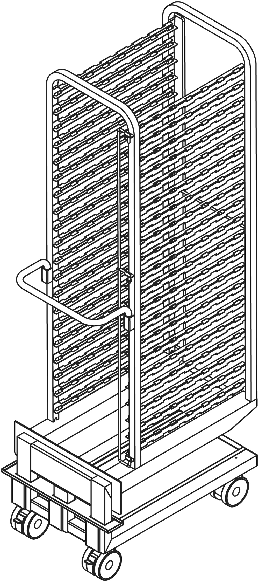 HORDENGESTELLWAGEN MIT FETTAUFFANGWANNE - MAXIMALES GEWICHT 90 KG - MAXIMALES GEWICHT PRO BEHÄLTER 25 KG470 x 715 x 1706 h 20 x 1/1 GN ↨ 63