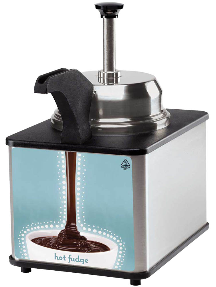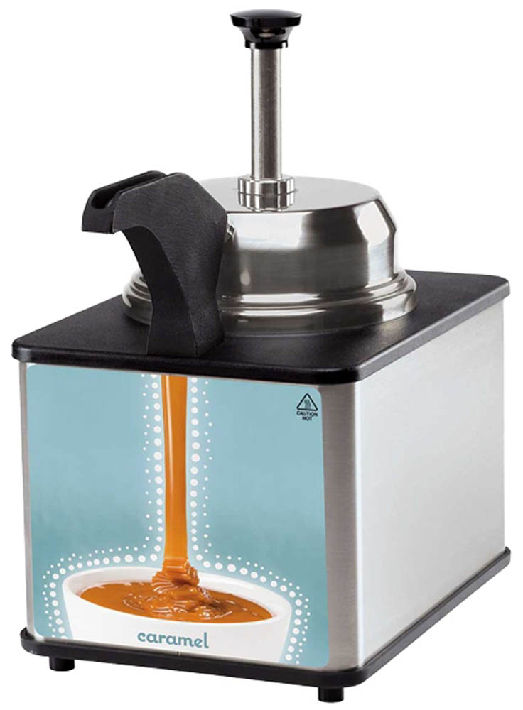 warme Käsesoße einfach über Nachos oder Cheese-Dogs portionieren • ideal für dickflüssige Soßen wie heiße Käse- und Karamelsoße • beheizter Zapfhahn • Edelstahl mit Kunststoffteilen • Inhalt ca. 2,8 Liter • Heizelement mit regulierbarem Thermostat verhindert das Anbrennen • Wasserbad für eine gleichmäßige Hitzeverteilung • der Deckel hält die Feuchtigkeit im Gerät • inkl. 3 verschiedene Magnetfolien zum Wechseln: Cheese sauce, Caramel, Hot fudge