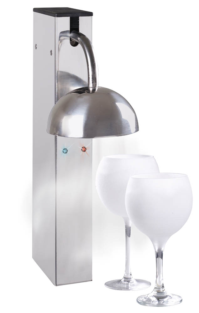 für das sofortige Frosten von Gläsern aller Art • das optische Highlight für Bars, Clubs und Restaurants • LED-Beleuchtung des Glases im CO2-Nebel während des Schockfrostens als besonderer Show-Effekt • perfekt für Sekt- und Weingläser, für Cocktails wie Daiquiris oder für das Servieren von Wodka, Ouzo und Aquavit • Kühlung von Getränken ohne die Verdünnung durch Schmelzwasser von Eiswürfeln • besonders platzsparend • kein Stromanschluss erforderlich, Betrieb der LEDs mit leicht wechselbarer AA 1,5V Batterie • Anschluss an eine CO2-Flasche mit beiliegendem Schlauch erforderlich • inkl. Schraubzwinge für die Anbringung auf dem Tresen (bis 80 mm) • inkl. Gasschlauch und Anschluss • einsetzbar bei einer Raumtemperatur bis +30°C