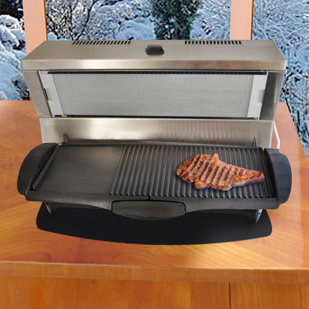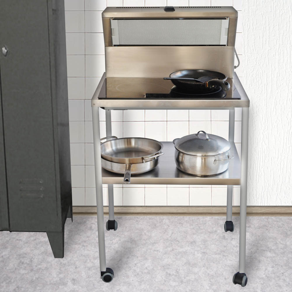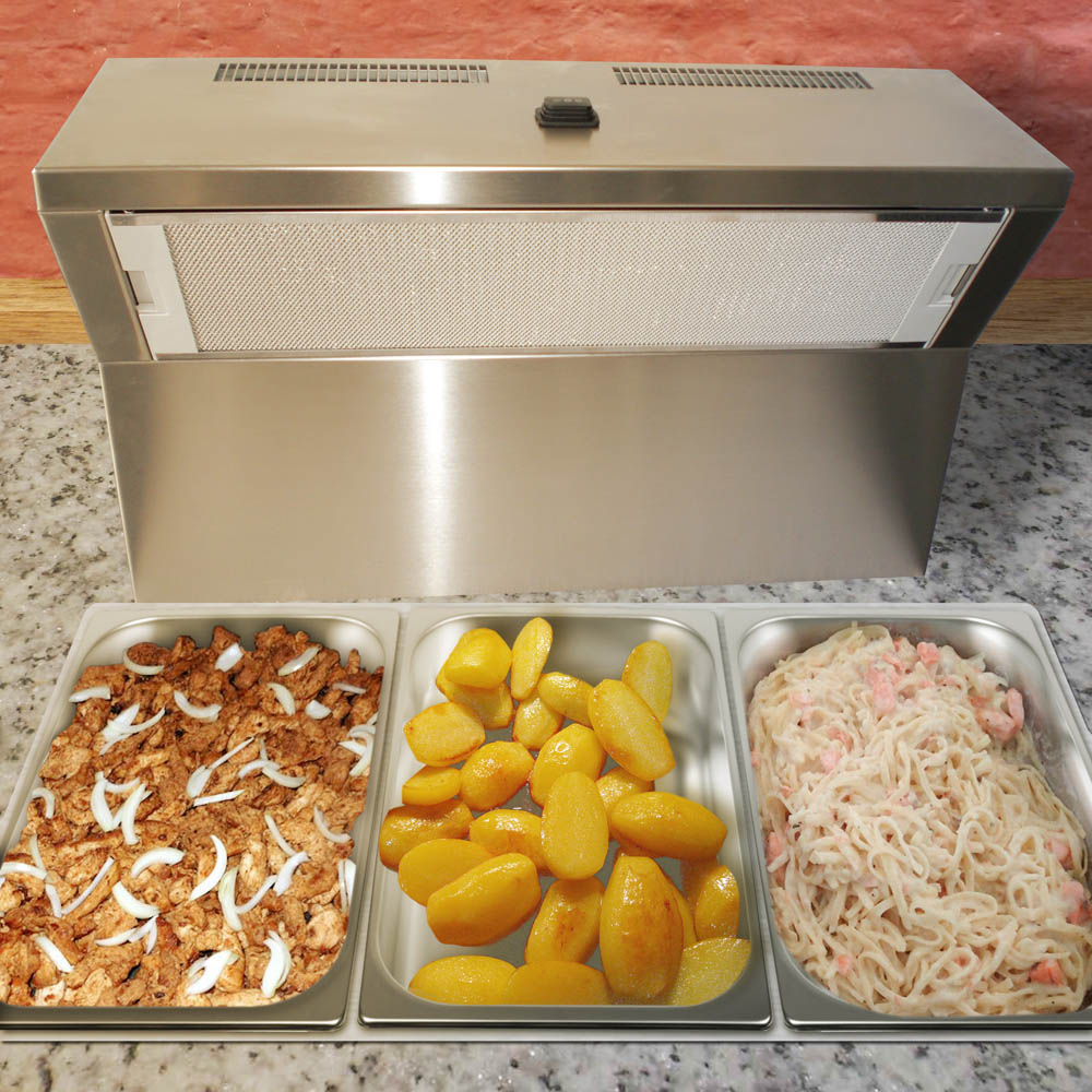 mobile Ausführung: einmalige Problemlösung für vielseitige Anwendungsbereiche in Catering, Gastronomie und Haushalt • absorbiert umweltfreundlich Gerüche und fetthaltige Dämpfe • hochqualitative Komponenten für eine lange Lebensdauer • Gehäuse Edelstahl • zeitloses, geradliniges und professionelles Design • einfache Bedienung • leichter Wechsel des Aktiv-Kohlefilters • leistungsstarker Querstromventilator • 2 Stufen: 200 m³/h, 300 m³/h • Geräuschpegel 40 db(A) • Catering & Partyservice: Mobiler Einsatz für Buffets zur Beseitigung von Gerüchen und Dämpfen • für saubere Luft und eine angenehme Atmosphäre bei Parties und Events • Gastronomie: Für Show-Cooking, bei Zubereitung der Speisen im Gästebereich oder direkt am Tisch, aber auch bei Selbstbedienung an Buffets • Wohnbereich: Effektiver Einsatz im Partykeller oder Wintergarten, um auch in der kalten Jahreszeit entspannt grillen zu können. Besonders in Wohnküchen zu empfehlen • Mobile Kleinküche: Für die Anwendung in Kleinküchen von Büros, Aufenthaltsräumen, Wohncontainern und Studentenwohnungen