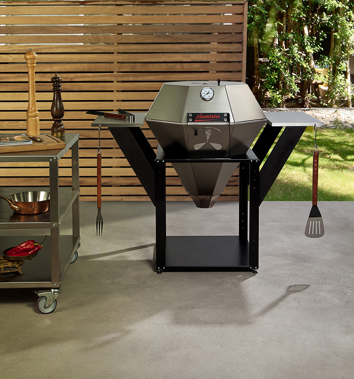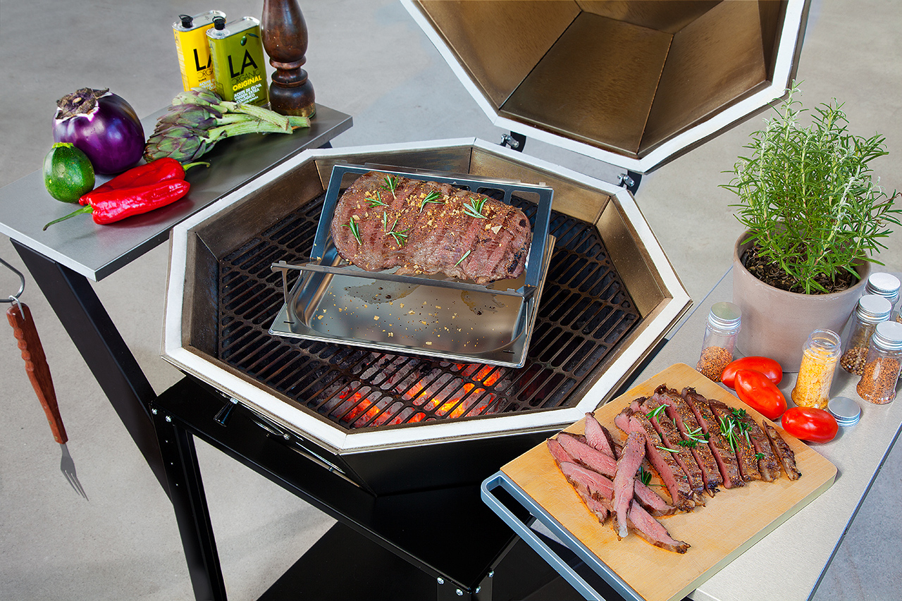 Der Diamant Grill® aus hochwertigem Edelstahl ist durch seine einfache Anwendung und die großzügige Grillfläche von 64 cm Durchmesser die perfekte Outdoor-Küche für den Profi-Koch oder für Grill-abende. Der Diamant Grill® muss für eine sichere Anwendung in der Diamant Fassung betrieben werden. Alternativ kann der Grill auch dekorativ in eine hitze-beständige, stabile Arbeitsplatte eingelassen werden. • Holzkohlegrill aus hochwertigem Edelstahl • doppelwandiges Gehäuse • regulierbarer Rauchabzug • inkl. Deckel-Thermometer • Luftzufuhrregler • wärmeisolierter Deckelgriff • inkl. Feuerrost und Chromstahl-Rost • Grillfläche Ø 64 cm (2.982 cm2) • massiver Stahlkern als Hitzespeicher • entnehmbare Aschewanne • Fassung und Flügel nicht im Lieferumfang enthalten