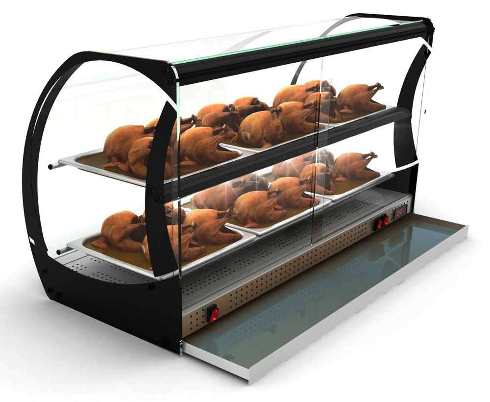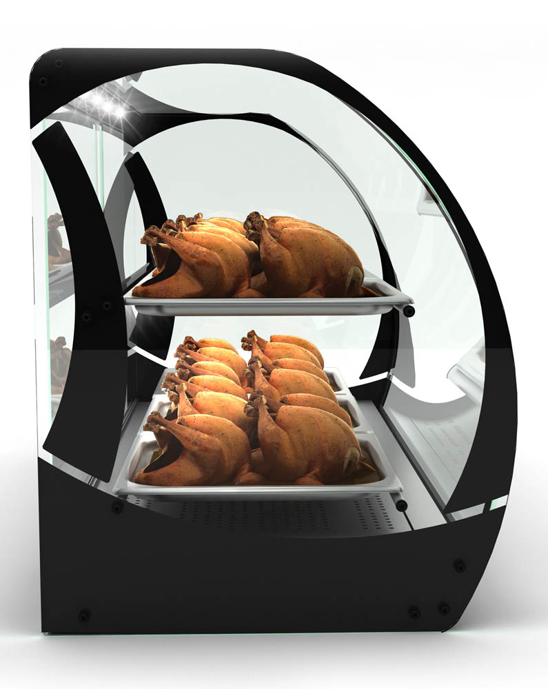 für eine Vielzahl verschiedener Produkte geeignet: Sandwiches, Teigwaren, Braten, Leberkäse u.v.m. • Temperaturbereich 30°-90°C • digitale Temperaturanzeige • Schiebetüren auf der Rückseite • langlebige LED-Beleuchtung auf jeder Ebene maximale Aufmerksamkeit • Absatzsteigerung durch maximale Sichtbarkeit der Produkte • Scheiben aus gehärtetem Glas • aufklappbare Frontscheibe • großzügige Wasserschale verhindert ein Austrocknen der Speisen • inkl. 6x 2/3 GN x 20 mm Behälter
