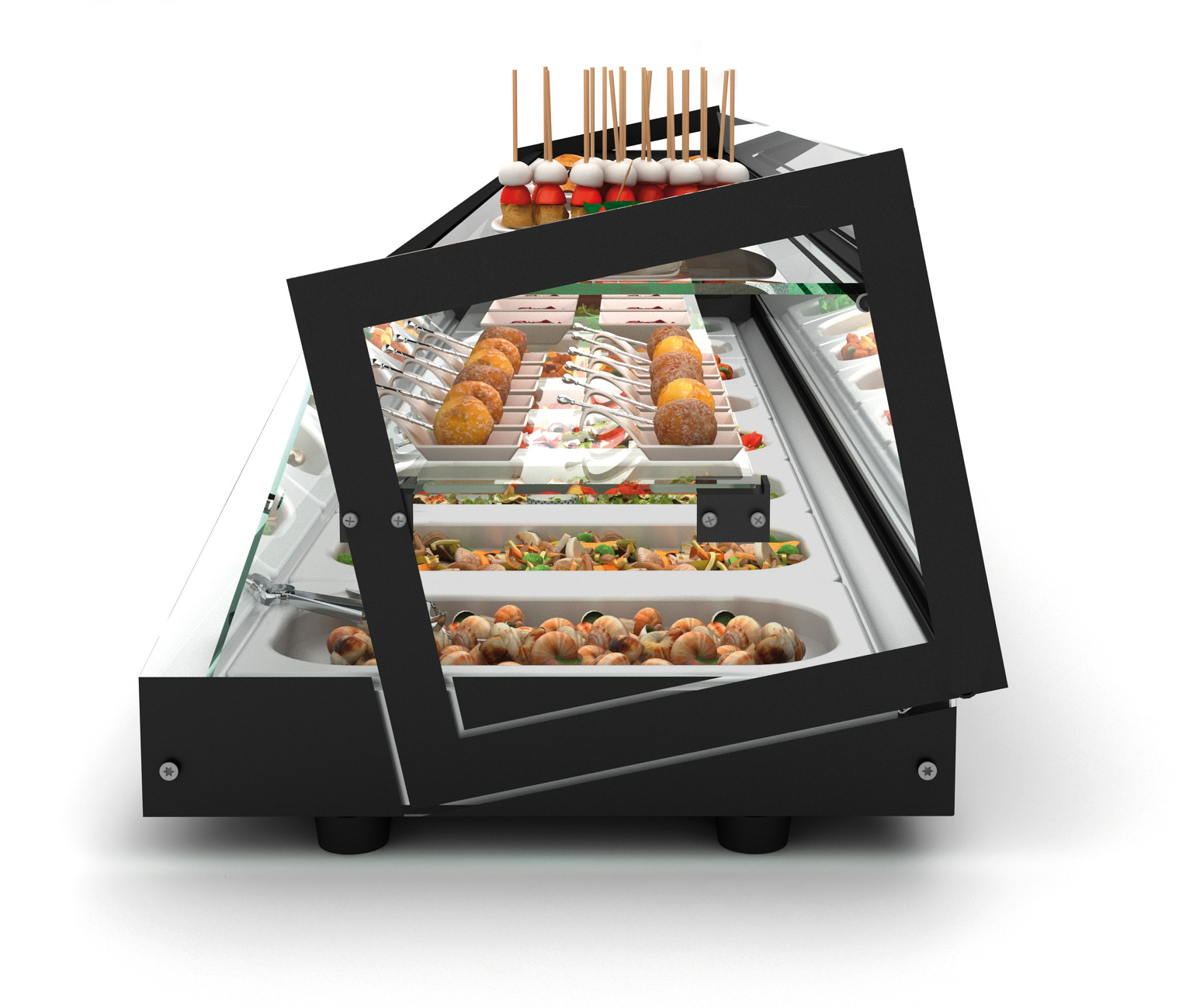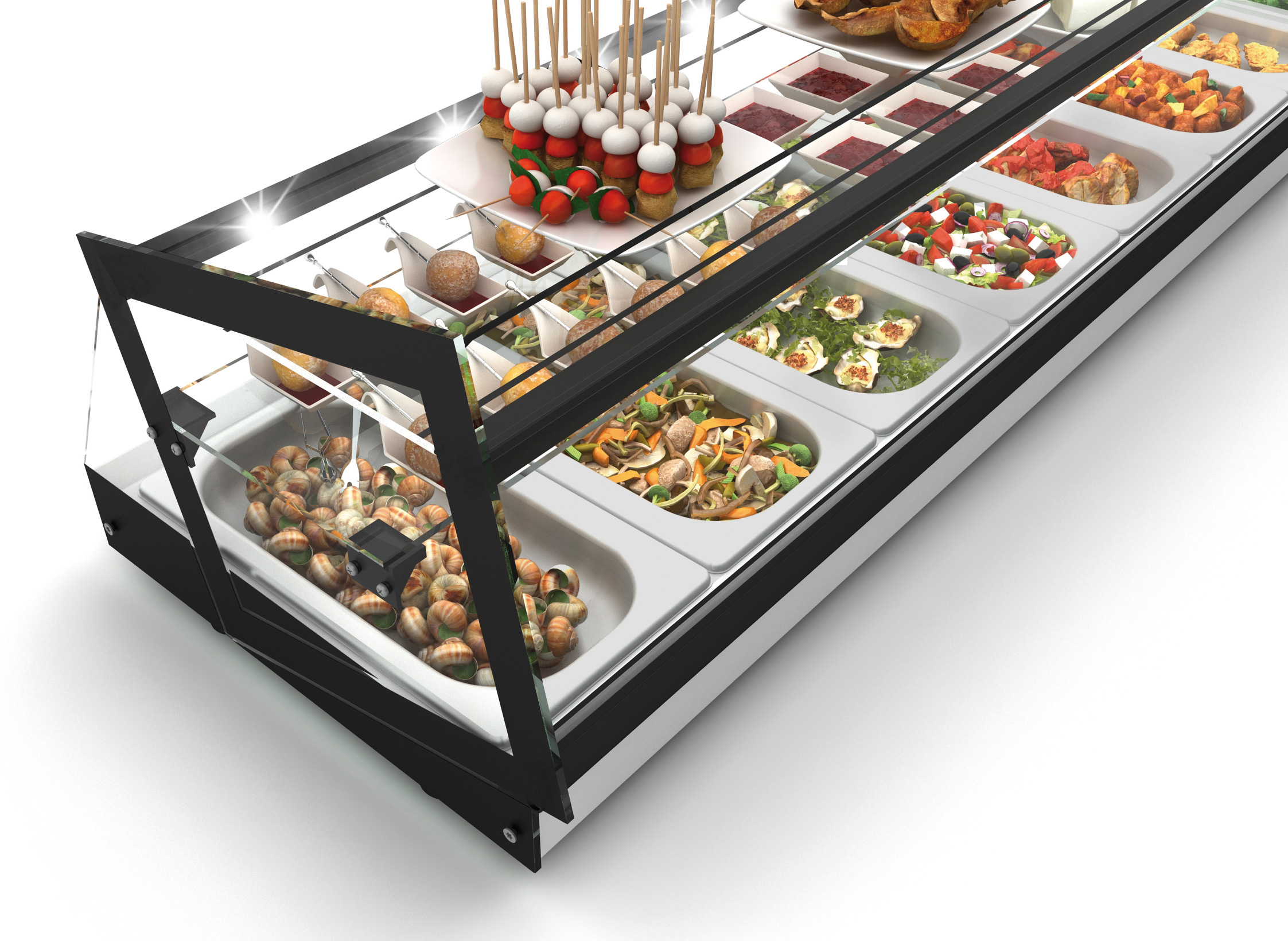- die Lieferung erfolgt ohne Deko und GN-Behälter siehe unter Zusatzgeräte