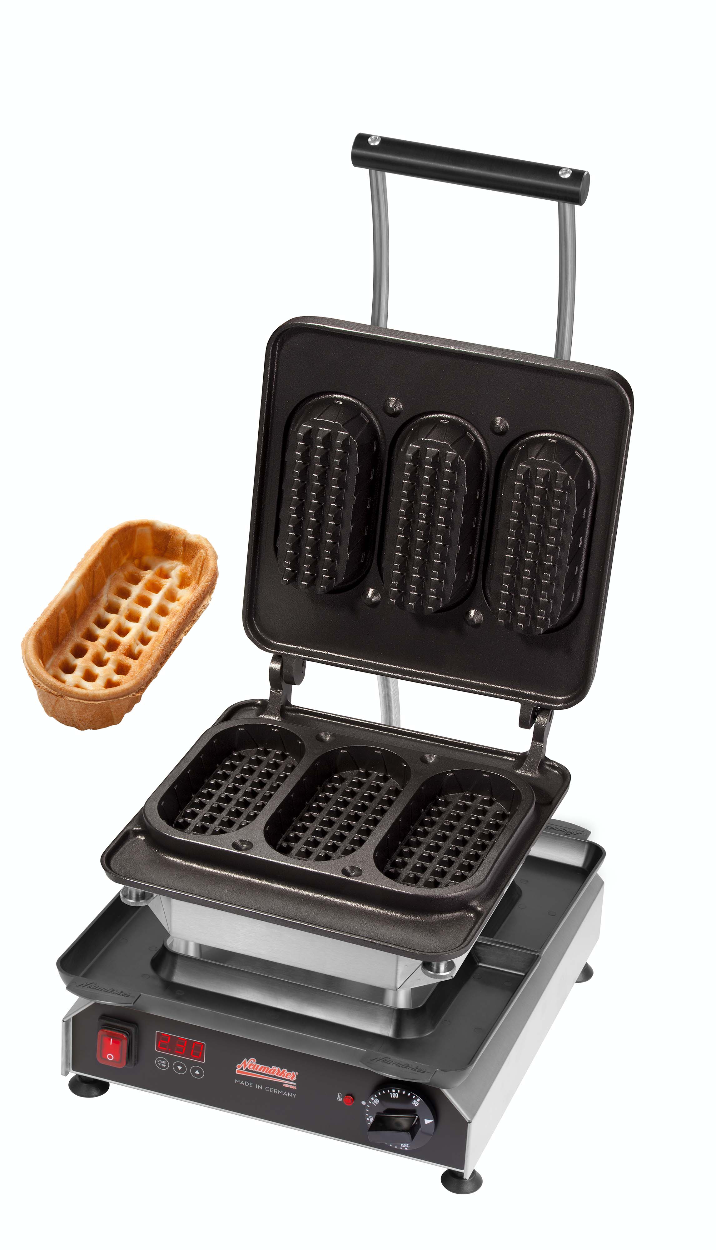 Essbare Schalen sind ein innovativer Trend in der Gastronomie, der Desserts und Fingerfood zu einem besonderen Hingucker macht. Mit den hochwertigen Wechselplatten von Neumärker können Sie im Handumdrehen knusprige Waffeln in Form von Schalen zaubern, die sich vielseitig füllen lassen.