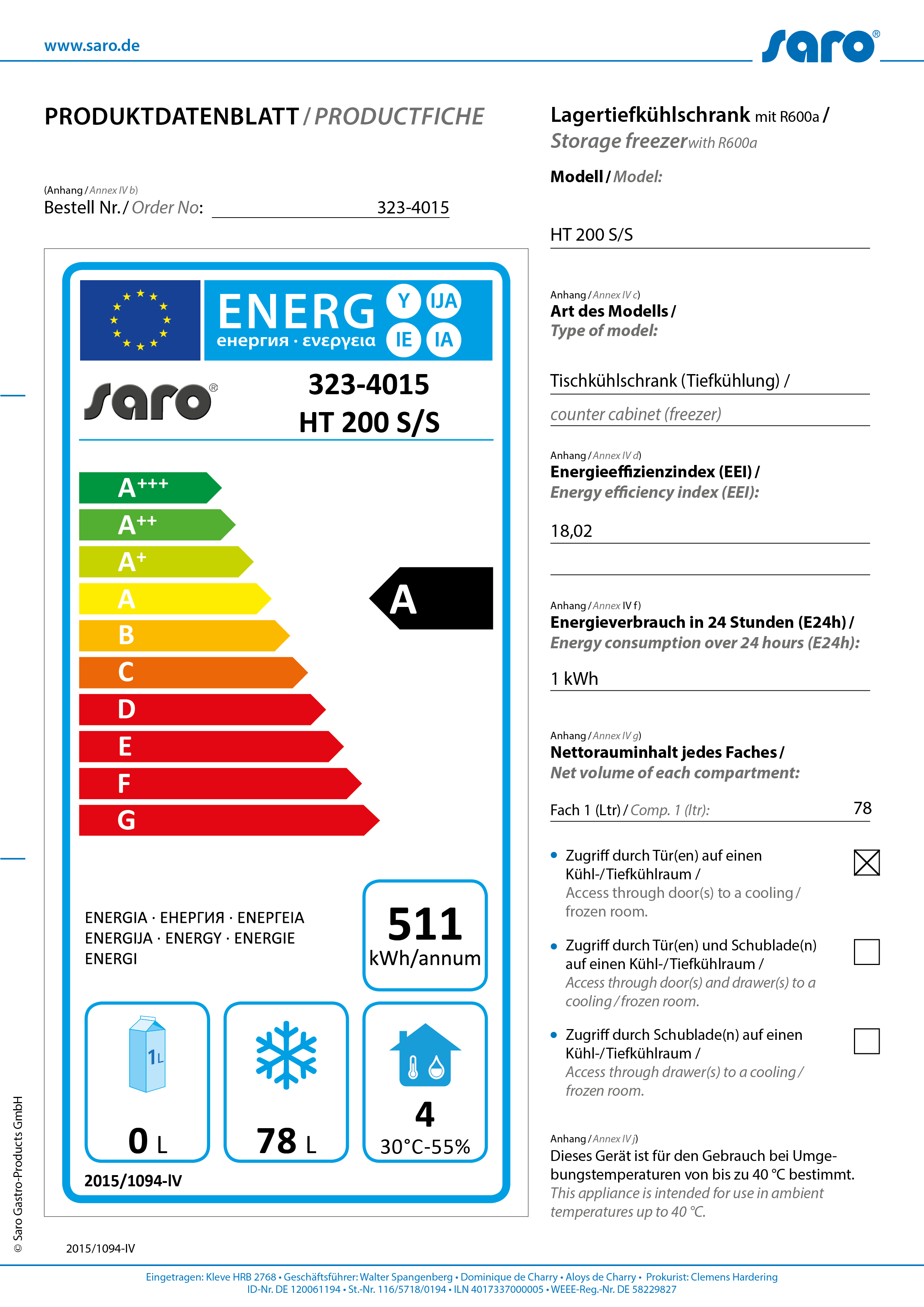 Produktinformationen "SARO Lagertiefkühlschrank - Edelstahl HT 200 S/S"