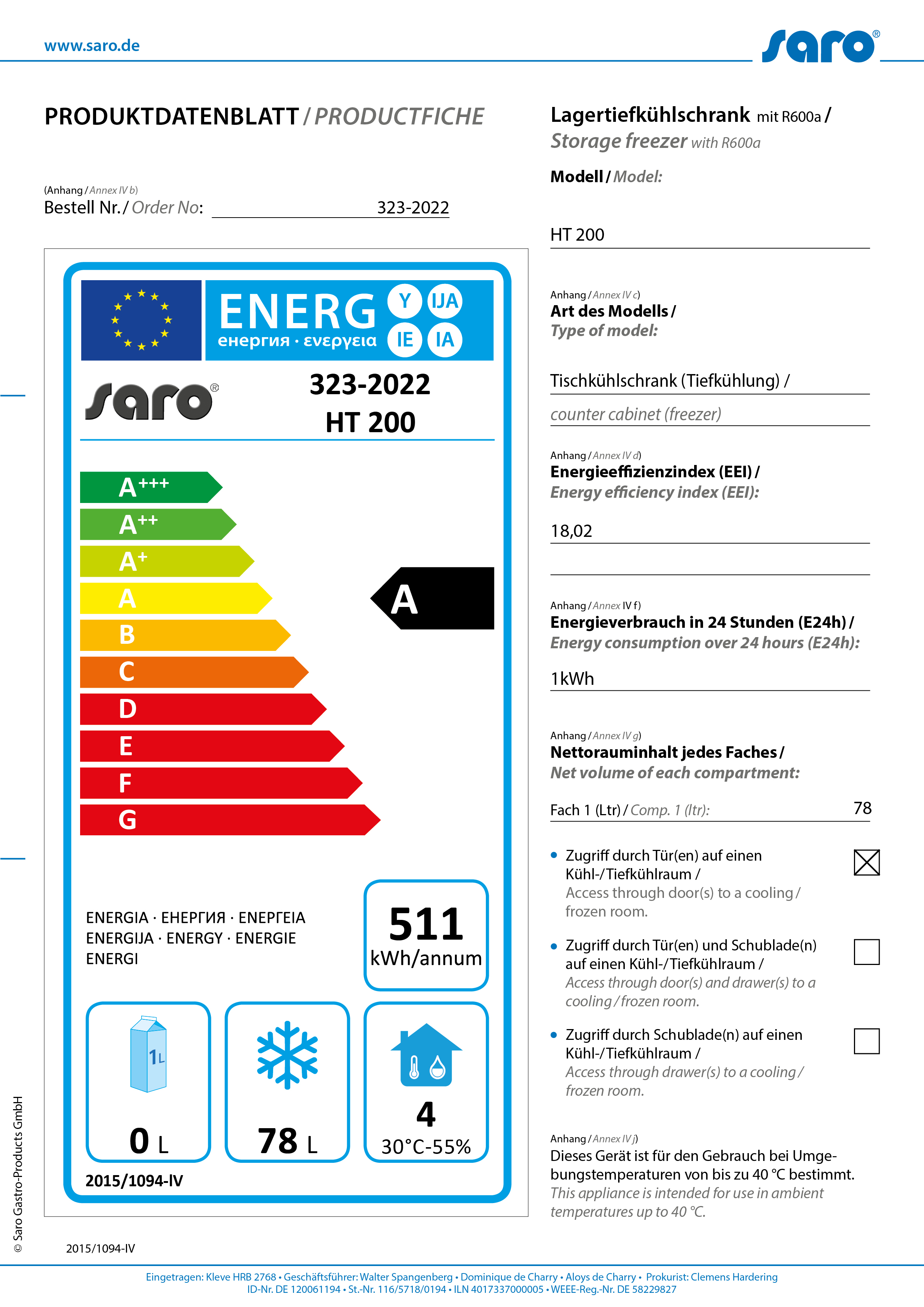 Produktinformationen "SARO Lagertiefkühlschrank - weiß HT 200"