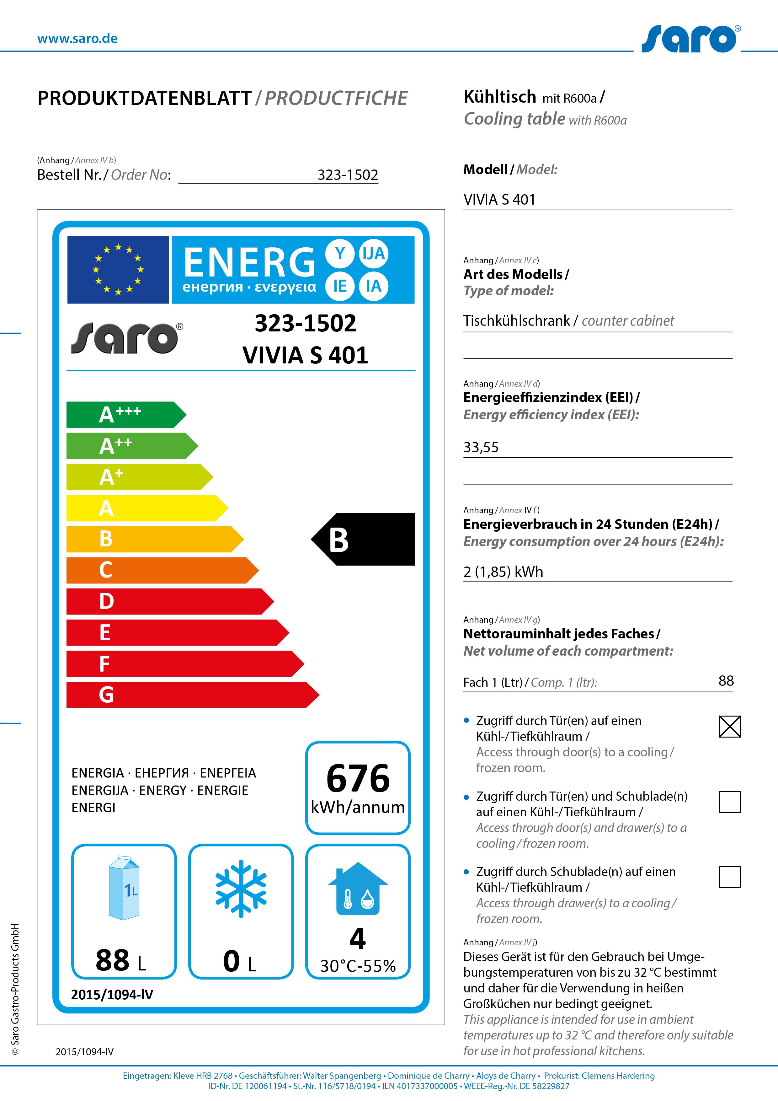 Produktinformationen "SARO Kühltisch VIVIA S 401"