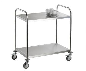- Material: Edelstahl, - Leichte Ausführung, - 4 Leichtlaufräder (2 mit Feststellbremse), - Tragfähigkeit: ca. 50 kg, 2 Borde, - Einfache Montage, - Bordabstand: ca. 600 mm, - Lieferung: „Flat-Pack“-Karton, - Gewicht: 10 kg, - Maße: B 860 x L 540 x H 940
