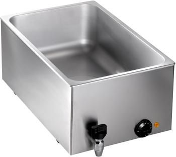 - Material: Edelstahl, - Für 1/1 oder 2 x 1/2 oder 3 x 1/3 GN-Behälter, - GN-Behältertiefe bis 150 mm, - Mit Ablasshahn, - Nahtloser oberer Rand, - Innenbehälter tiefgezogen, - Regulierbares Thermostat und Kontrolllampe, - Geringer Verbrauch und lange Lebensdauer, - Abmessungen inkl. Ablasshahn, - Gewicht: 9 kg, - Maße: B 345 x L 600 x H 255, - temp. 0 / +100 °C, - Anschluss: 230 V - 50 Hz - 1 kW
