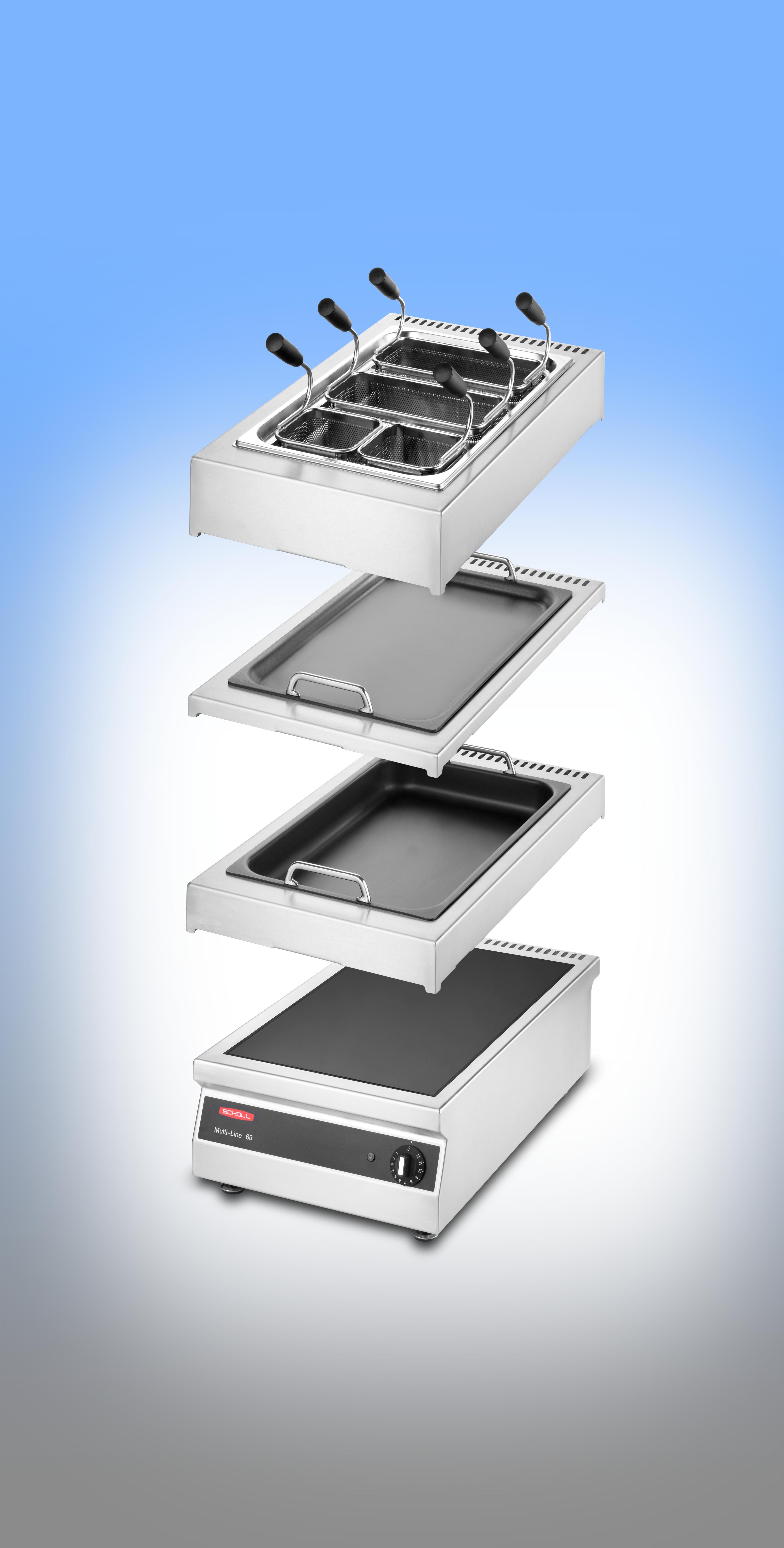 Mit diesem Induktionskochfeld erleben Sie höchste Flexibilität. AUfgrund der Rechteckspule haben Sie die Möglichkeit mit zusätzlichem Zubehör sowohl zu kochen, grillen, braten und Pasta zu kochen. Mehr Flexibilität geht nicht mehr. Das optimale Gerät für Ihr Frontcooking System.