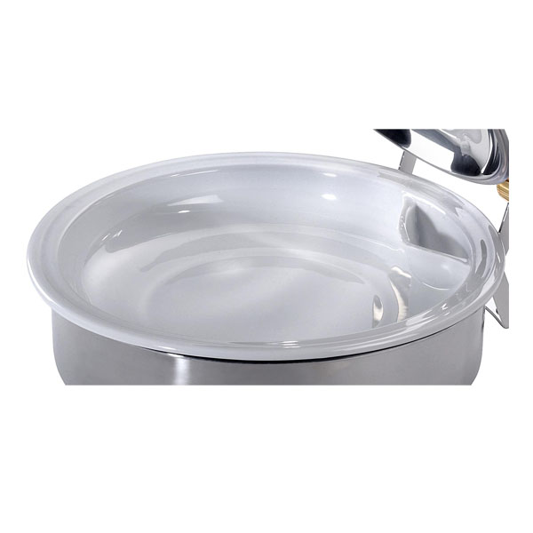 Hier kaufen Sie diesen sehr schönen Induktions Speisenwärmer in runder Ausführung mit Messinggriffen von Scholl. Das Scholl Induktions Warmhaltegerät dient Ihnen als passendes Zubehör für Ihre Speisenausgabe. Der Induktions Chafing Dish hat eine Kapazität von 2 Litern und ist rund ausgeführt. Der Porzellaneinsatz ist einteilig als zusätzliches Ersatzteil für ein Mise au place separat zu bestellen (Artikelnummer Z0660).