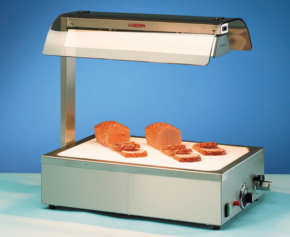 Produktinformationen "Scholl Fleischkäsewärmer 3602 mit beheizter Wanne und Wärmebrücke und Hustenschutz H3980"