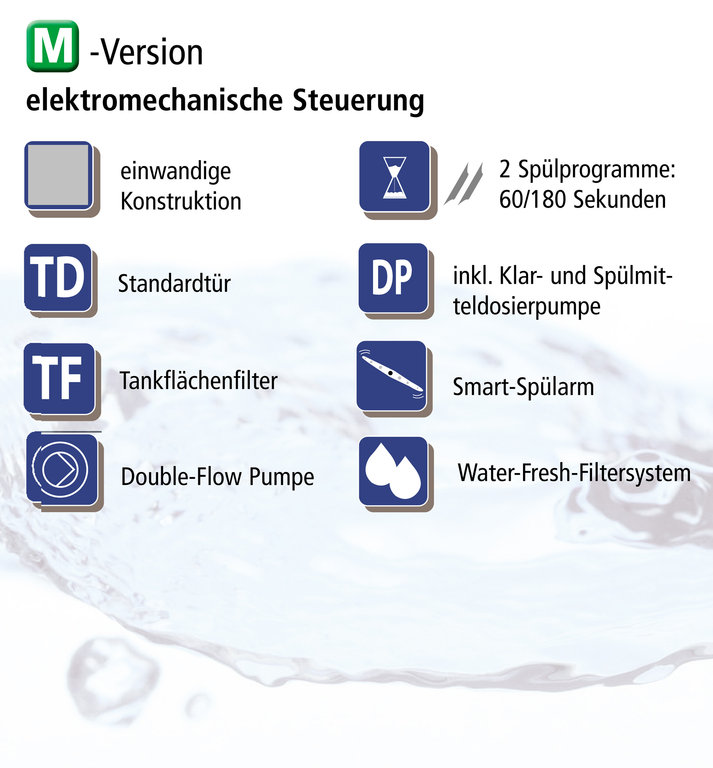 - Elektronisch einstellbare Klar- und Spülmitteldosierpumpe