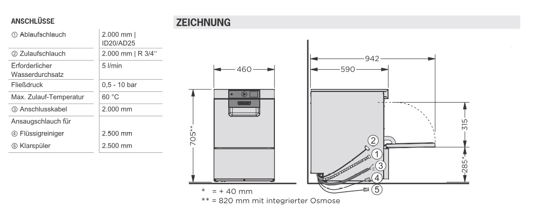 - inklusive Flüssigreiniger-Dosierpumpe & Klarspülmittel-Dosierpumpe
