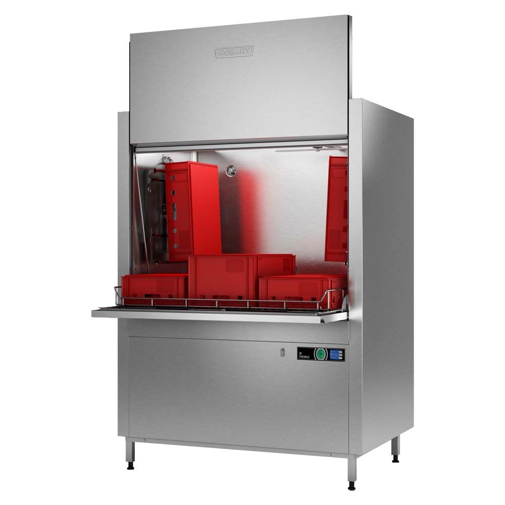 - Seitliches Waschsystem: Aufnahmekapazität von 8 1/1 GNSchalen und 5 E-Norm-Kisten.
