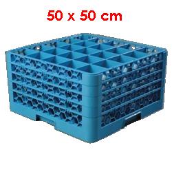 Gläserkorb 50 x 50 cm mit Trennung für 25 Gläser - Gastro Spülkorb grau 5x5