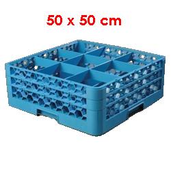 Gläserkorb ( Geschirrspülkorb GLAS ) für Gläser- und Geschirrspülmaschinen 3x3 für insgesamt 9 Gläser mit einem maximalen Durchmesser von 155 mm. Der preisgünstige Gläserkorb im Format 50 x 50 cm für Ihre Geschirrspülmaschine verhindert Glasbruch, läßt sich einfach stapeln, lagern und transportieren. Verschiedene Höhen lieferbar. Die Ausführung der Spülkorbes ist mit Facheinteilung aus hellgrauem Polypropylen, DIN 66075-F (50 x 50 cm), stapelbar, hitzeresistent bis +120°C, durch weitere Aufsätze lässt sich die Nutzhöhe um jeweils 4 cm erweitern ( siehe Varianten ).