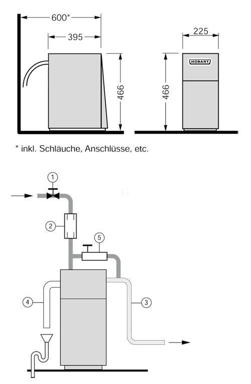 Ein Sicherheitsüberlaufschlauch für den Behälter kann bauseits angebracht werden.